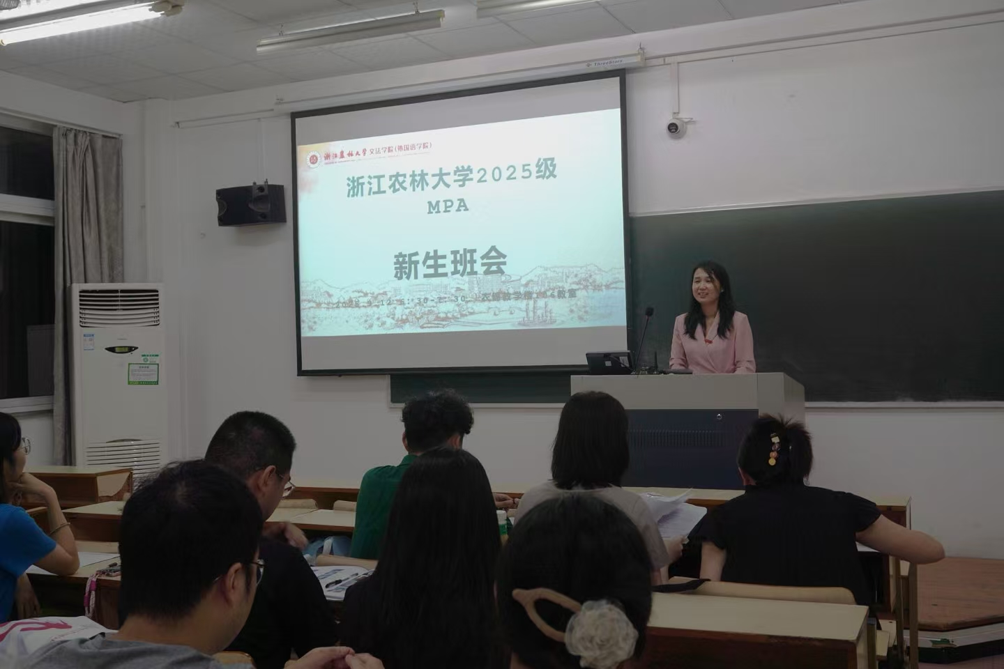 李琳琳副教授介绍了MPA专业的设立背景与发展愿景。我校MPA教育紧密对接国家治理现代化需求,聚焦乡村振兴与生态环境治理两大特色方向,致力于培养兼具理论素养与实践能力的复合型公共管理人才。15名来自城乡规划、生态环保、国企行政等不同领域的新生依次进行自我介绍。他们中既有来自泰兴市自然资源和规划局、开化县府办、临安区农业农村局等政府机关的实务骨干,也有来自浙江天目山国家级自然保护区管理局、湖州产业集团、方圆检测等企事业单位的专业人才。多位同学在介绍中表达了“希望跳出部门看全局,将工作实践与理论学习深度融合”“期待成长为兼具理论素养与实践能力的公共管理人才,实现从事务型管理者到战略型公共服务者的转型”“愿在课堂中解读政策肌理,在田野中扎根乡村振兴”的学习愿望,现场互动频繁,交流氛围融洽。