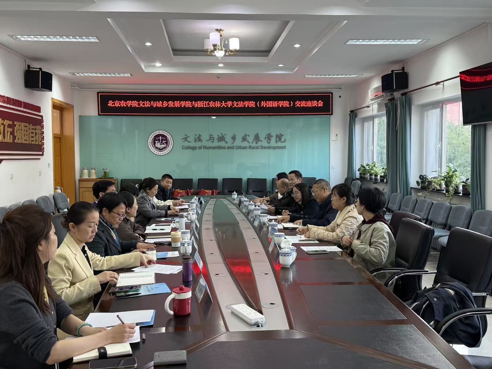 在北京农学院文法与城乡发展学院,党委书记赵和文、院长韩芳接待调研团队并参与座谈。韩芳回顾了两院合作基础,系统介绍了该院在办学定位、学科规划、人才培养及国际合作方面的探索,重点分享了在涉农法治、乡村治理等领域涉外人才培养的成果,希望双方进一步拓展合作层次,共同提升办学质量。与会人员围绕学科交叉融合机制、新农科与新文科协同、基层治理人才培养等主题进行了广泛讨论。